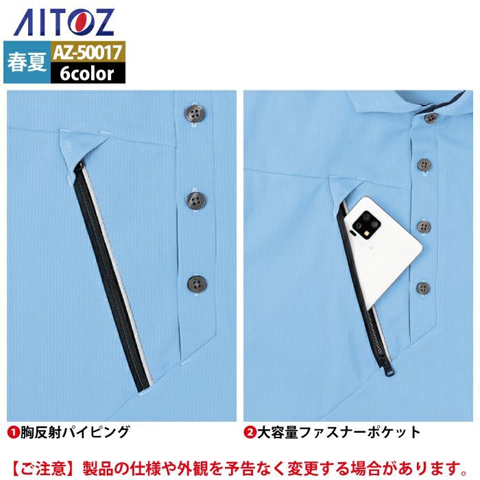 作業服 作業着 アイトス Aitoz 作業服 AZ-50017 長袖ポロシャツ 6L オールシーズン