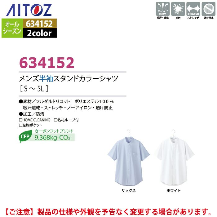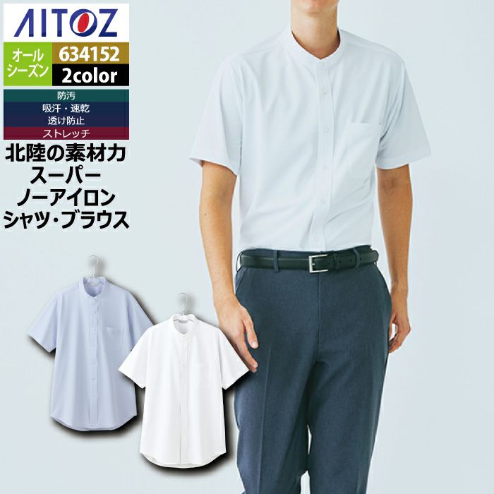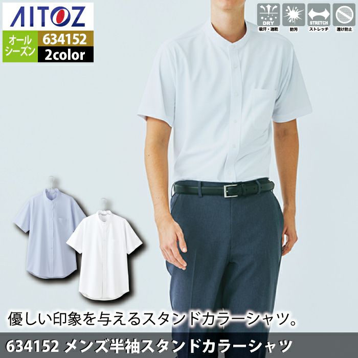オフィス 事務 ビジネスウェア オフィスウェア 634152 メンズ半袖スタンドカラーシャツ S-LL オールシーズン アイトス Aitoz