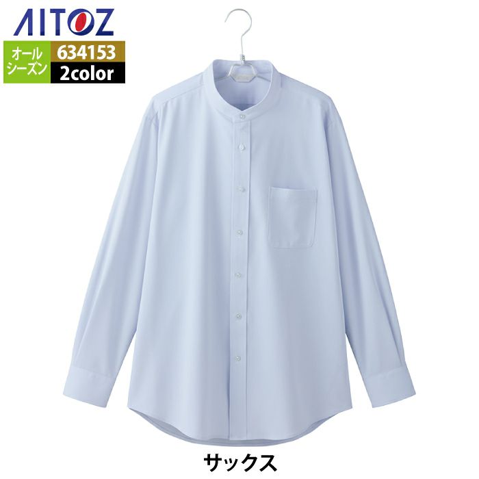 オフィス 事務 ビジネスウェア オフィスウェア 634153 メンズ長袖スタンドカラーシャツ S-LL オールシーズン アイトス Aitoz