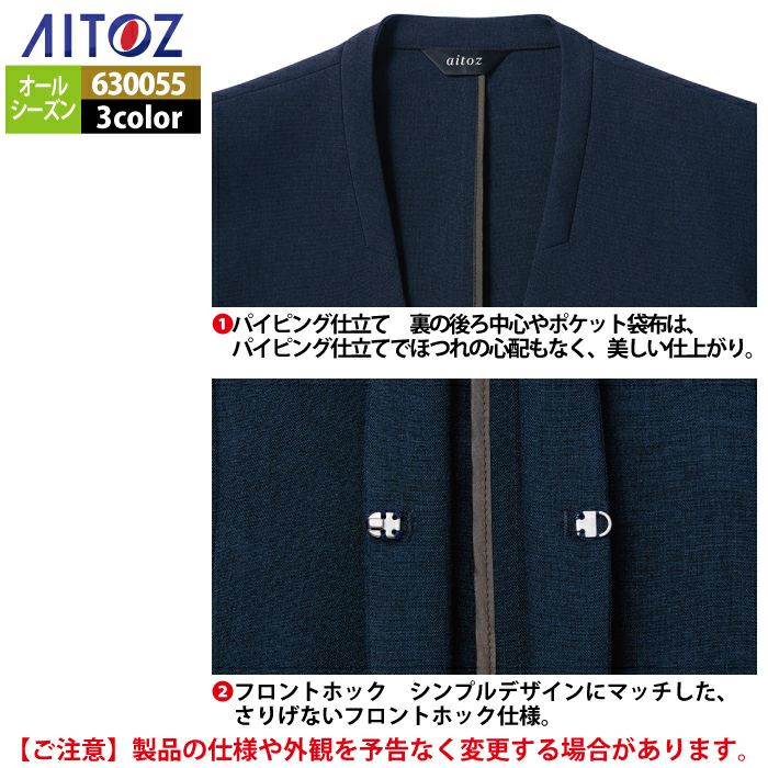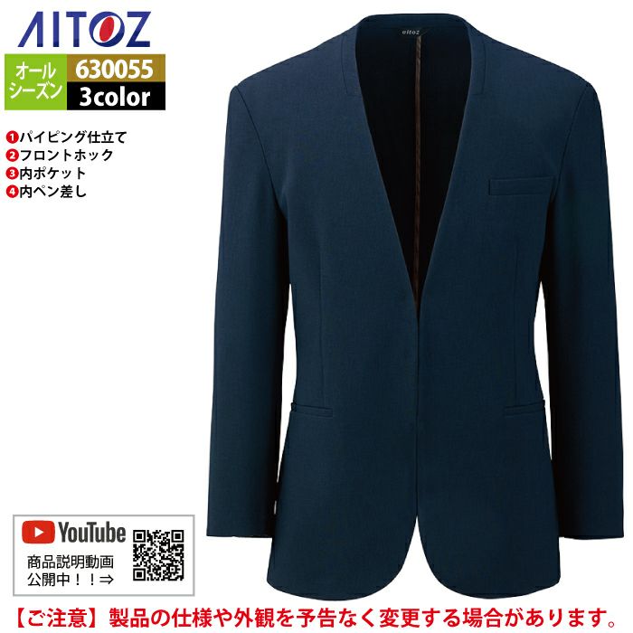 オフィス 事務 ビジネスウェア オフィスウェア 630055 メンズノーカラージャケット S-LL オールシーズン アイトス Aitoz