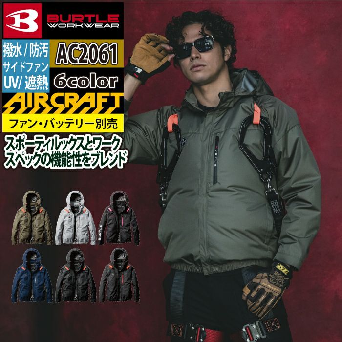 ユニセックス UV フード付き バートル BURTLE 作業着 2025春夏新作 エアークラフト AC2061 ACブルゾン S-XXL 作業服 単品 遮熱 撥水 サイドファン