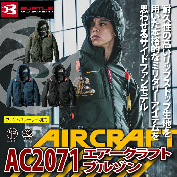 ユニセックス UV フード付き バートル BURTLE 作業着 2025春夏新作 エアークラフト AC2071 ACブルゾン 3XL 作業服 単品 遮熱 撥水 サイドファン