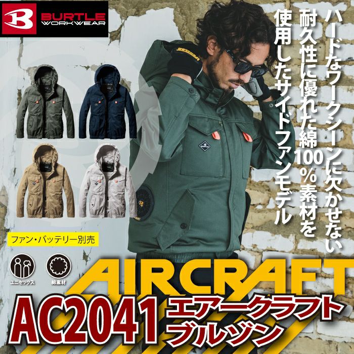 ユニセックス フード付き バートル BURTLE 作業着 2025春夏新作 エアークラフト AC2041 ACブルゾン S-XXL 作業服 単品 綿100 サイドファン