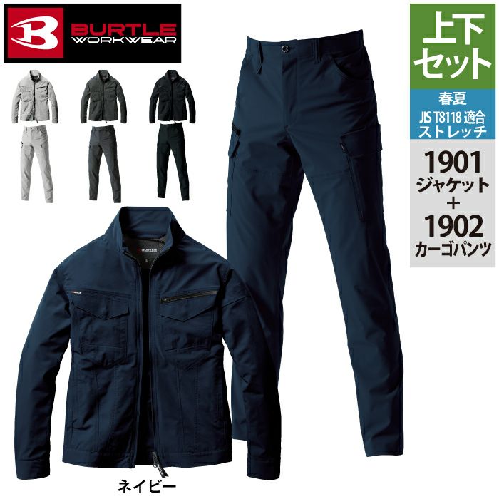 ユニセックス ストレッチ バートル BURTLE 作業着 上下セット 1901 ジャケット S-3L と 1902 カーゴパンツ S-3L 作業ズボン 作業服 おしゃれ 春夏