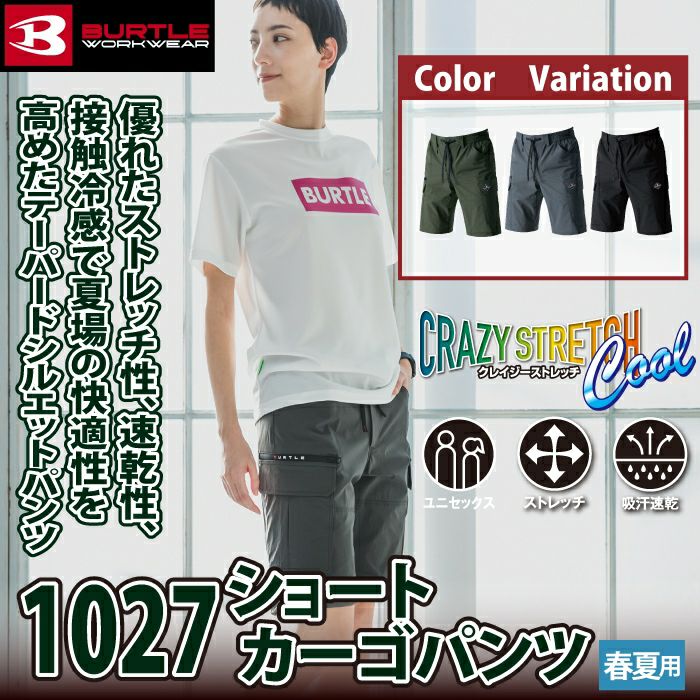バートル BURTLE 作業着 作業ズボン 2025春夏新作 1027 ショートカーゴパンツ XXL 作業服 おしゃれ ドライ 冷感