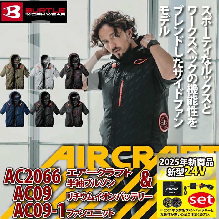 バートル BURTLE 作業着 2025春夏新作 エアークラフト AC2066 半袖ブルゾン+ファン+バッテリー 新型24Vフルセット AC09