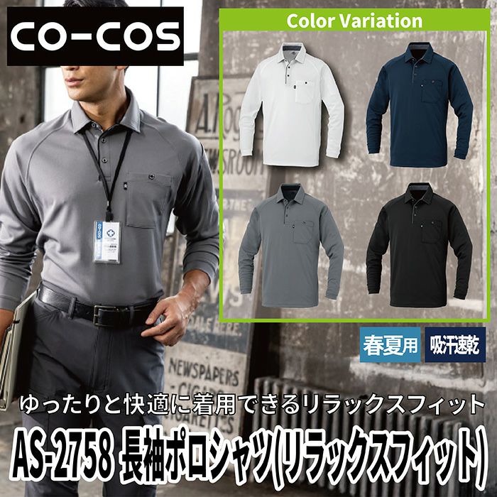 コーコス 作業服 作業着 コーコス 作業服 春夏 AS-2758 長袖ポロシャツ(リラックスフィット) SS-LL 作業着 CO-COS