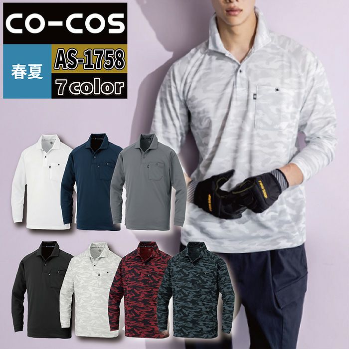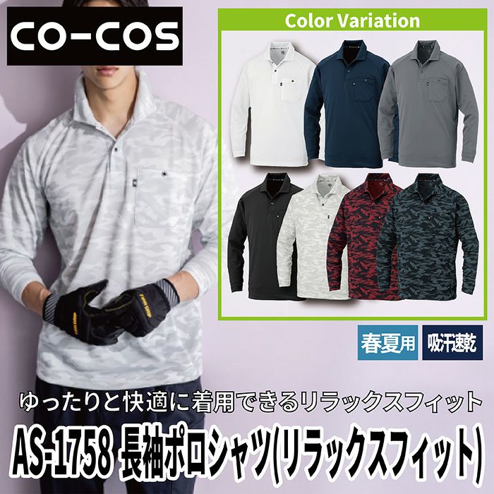 コーコス 作業服 作業着 コーコス 作業服 春夏 AS-1758 長袖ポロシャツ(リラックスフィット) 4L-6L 作業着 CO-COS