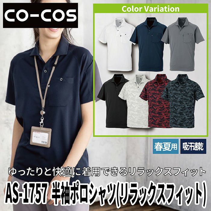 コーコス 作業服 作業着 コーコス 作業服 春夏 AS-1757 半袖ポロシャツ(リラックスフィット) SS-LL 作業着 CO-COS