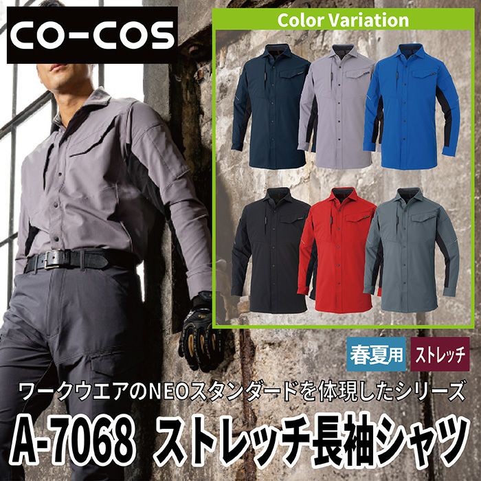 コーコス 作業服 作業着 コーコス 作業服 春夏 A-7068 ストレッチ長袖シャツ 4L-6L 作業着 CO-COS