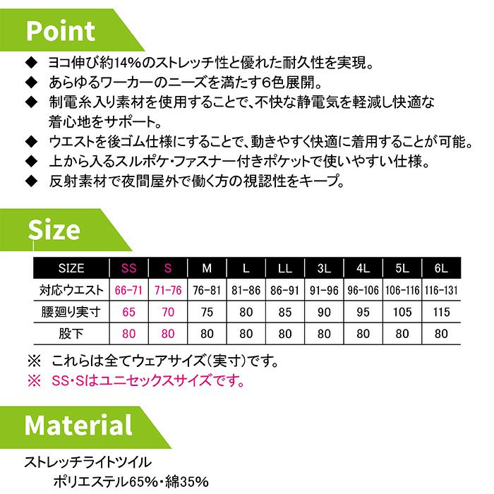 コーコス 作業服 作業着 作業ズボン コーコス 作業服 作業ズボン 春夏 A-7063 ストレッチスラックス SS-LL 作業着 CO-COS