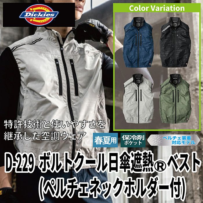 ファン付きウェア (服のみ) ディッキーズ Dickies 作業服 作業着 春夏 D-229 ボルトクール日傘遮熱ベスト XS-4XL