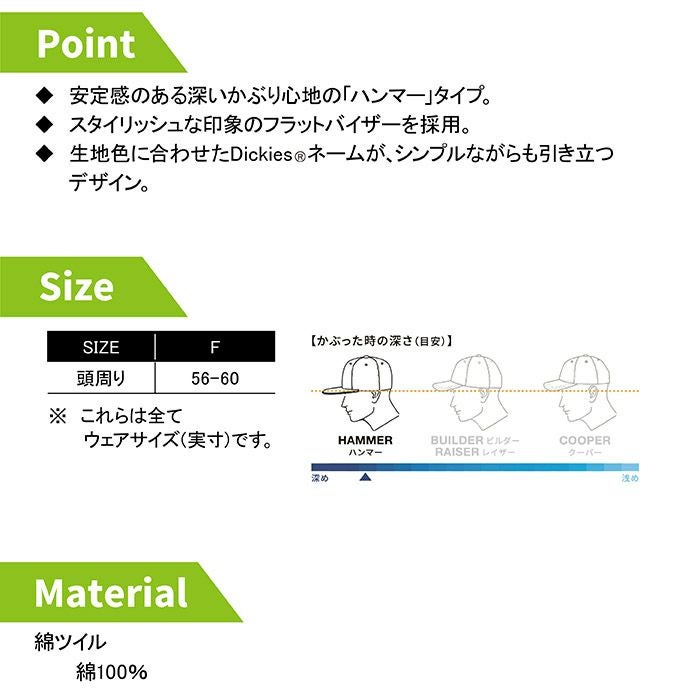 ディッキーズ Dickies 作業服 作業着 オールシーズン D-8212 ワークキャップ(ハンマー) F