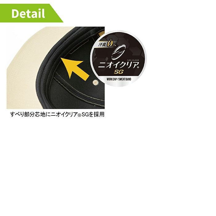 ◇帽子と内側の頭との接触部分(すべり部分)にニオイクリア芯地と吸汗のドライメッシュ素材を使用し快適さをプラス