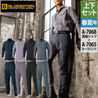 コーコス 作業服 上下セット 春夏 A-7068 ストレッチ長袖シャツS-3L と A-7065 ストレッチカーゴパンツ SS-3L 作業着 作業ズボン