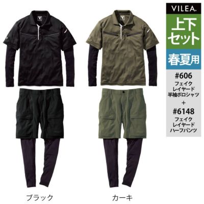 村上被服 HOOH 鳳凰 作業服 上下セット 606 フェイクレイヤード半袖ポロシャツS-3L と 6184 フェイクレイヤードハーフパンツ SS-3L 作業着 作業ズボン 春夏