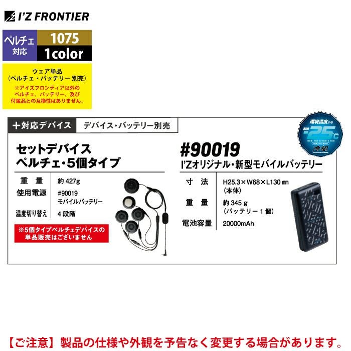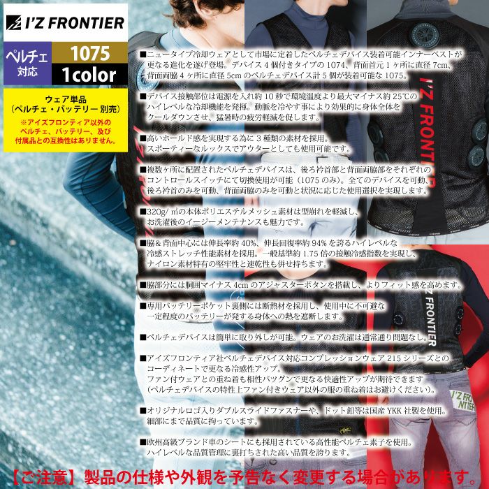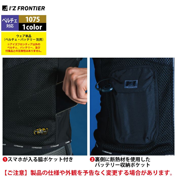 アイズフロンティア 空調服 2025 春夏 新作 作業服 アイズフロンティア 作業服 2025春夏新作 ペルチェ対応ウェア 1075 冷却ペルチェ5個タイプ単品 S-XXL 空調服 作業着 おしゃれ