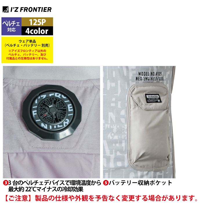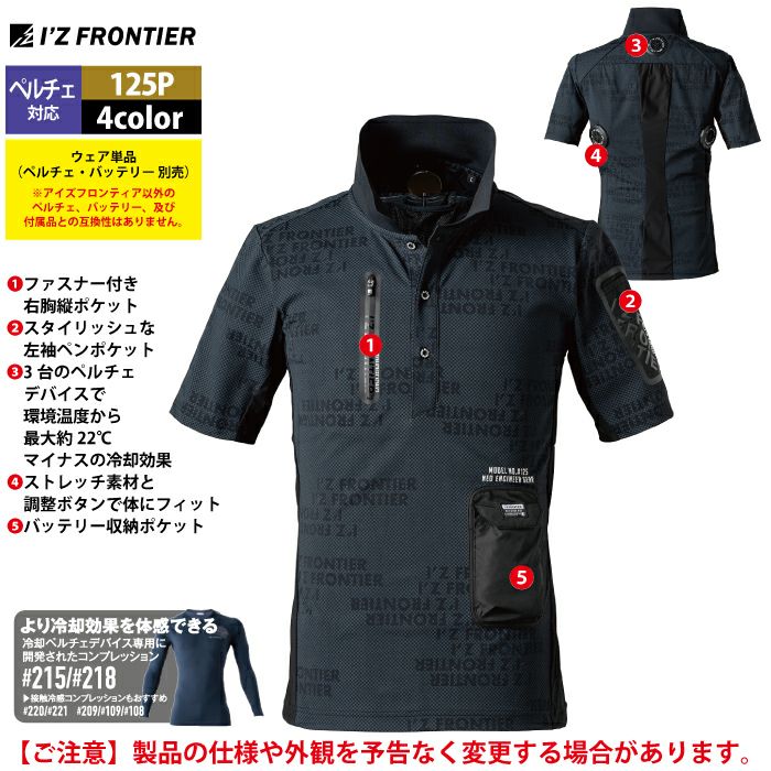 アイズフロンティア 作業服 2025春夏新作 ペルチェ対応ウェア 125P ペルチェ専用半袖ポロシャツ S-4L 空調服 作業着 おしゃれ