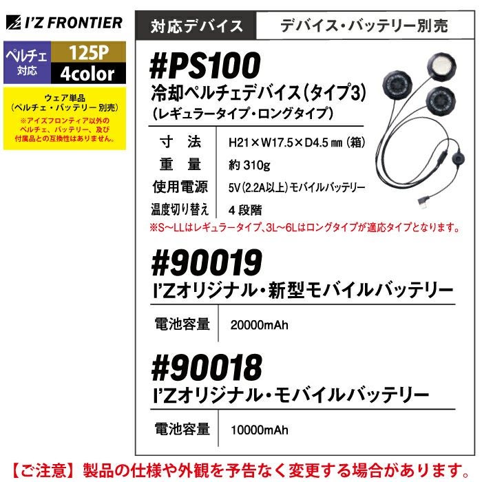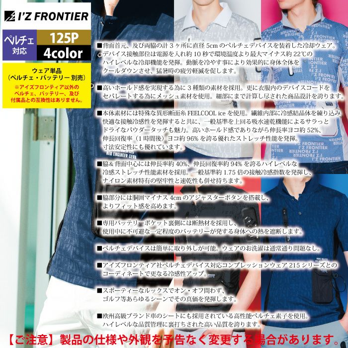 アイズフロンティア 空調服 2025 春夏 新作 作業服 アイズフロンティア 作業服 2025春夏新作 ペルチェ対応ウェア 125P ペルチェ専用半袖ポロシャツ S-4L 空調服 作業着 おしゃれ