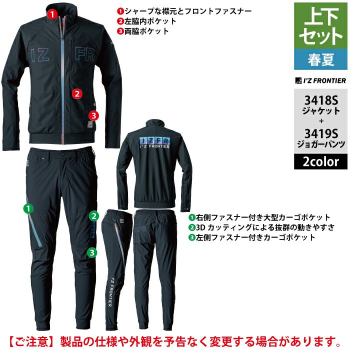アイズフロンティア 2025 春夏 新作 作業服 作業着 アイズフロンティア 作業服 上下セット 春夏 3418S 冷感ワークジャケットS-4L と 3419S 冷感ジョガーパンツ SS-5L 作業着 作業ズボン