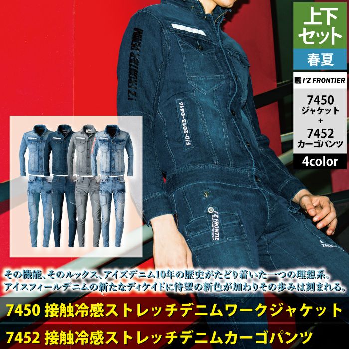 アイズフロンティア 2025 春夏 新作 作業服 作業着 アイズフロンティア 作業服 上下セット 春夏 7450 アイスフィールデニムワークジャケット と 7452 アイスフィールデニムカーゴパンツ 作業着 作業ズボン