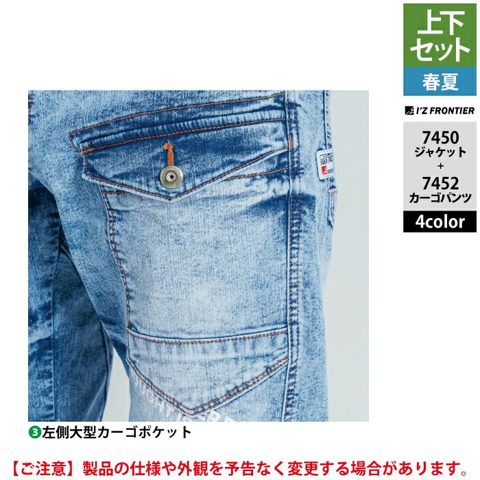 アイズフロンティア 作業服 上下セット 春夏 7450 アイスフィールデニムワークジャケット と 7452 アイスフィールデニムカーゴパンツ 作業着 作業ズボン