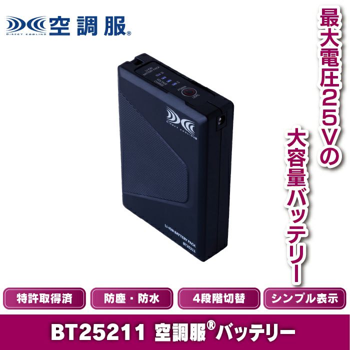 【BT25211 空調服バッテリー(バッテリー単品)25V超大風量連続モード搭載】
