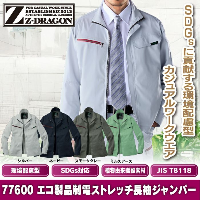 自重堂 作業服 作業着 自重堂 Z-DRAGON ジードラゴン 作業服 春夏 77600 エコ製品制電ストレッチ長袖ジャンパー SS-LL 作業着