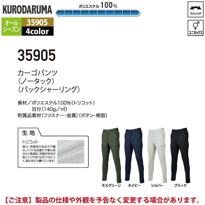 クロダルマ 作業服 春夏 35905 カーゴパンツ SS-LL 作業着 作業ズボン