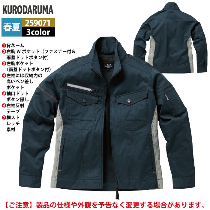 クロダルマ 作業服 春夏 259071 長袖ジャンパー SS-LL 作業着