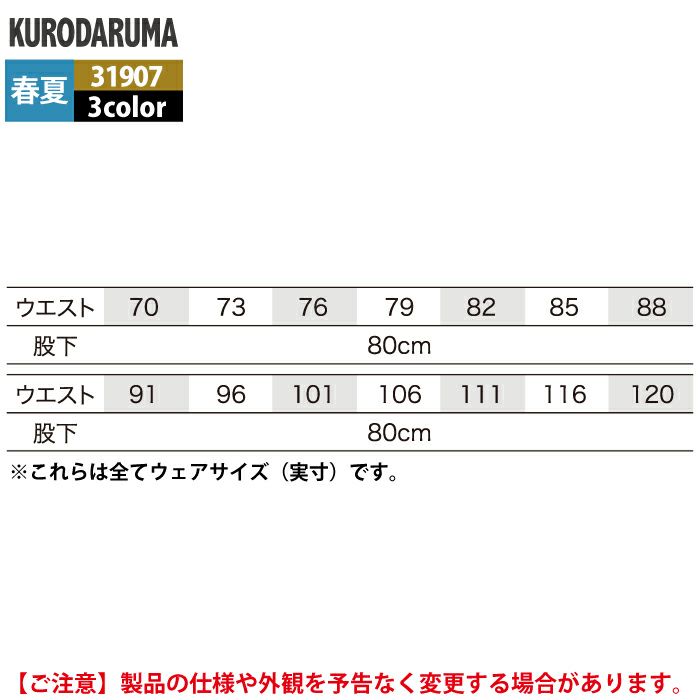 クロダルマ 作業服 春夏 31907 スラックス 70-88 作業着 作業ズボン