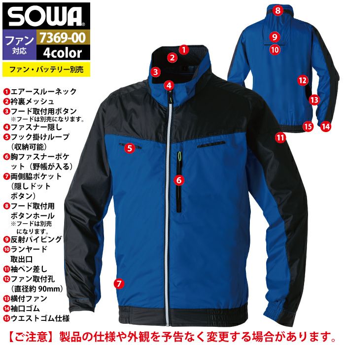 空調服 桑和 SOWA 作業服 作業着 ファン付きウェア(服のみ) 桑和 SOWA 作業服 7369-00 長袖EFブルゾン 8L 作業着 春夏