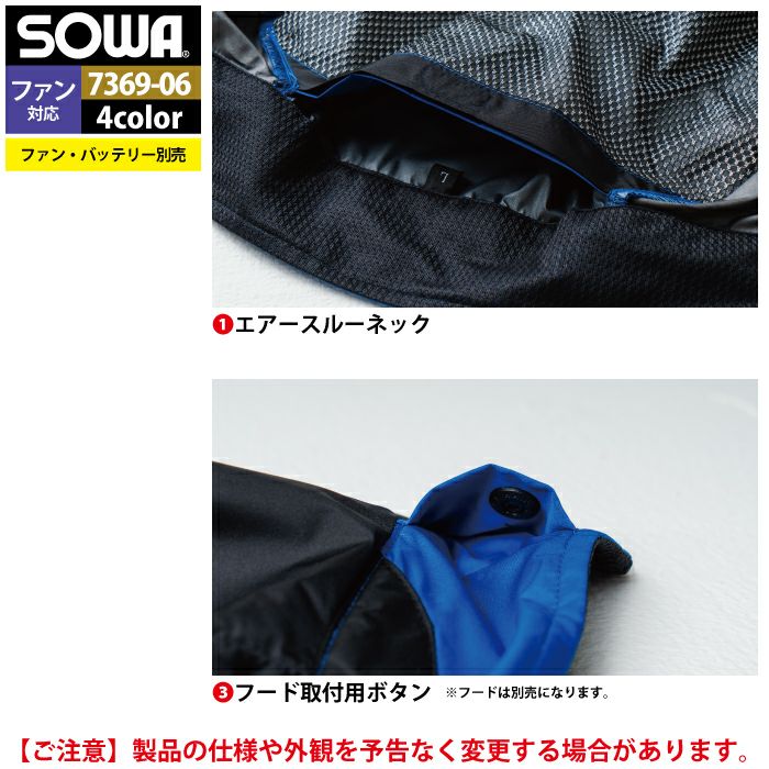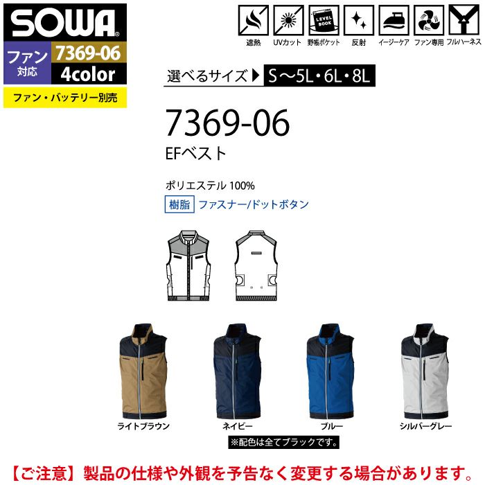 空調服 桑和 SOWA 作業服 作業着 ファン付きウェア(服のみ) 桑和 SOWA 作業服 7369-06 EFベスト S-LL 作業着 春夏