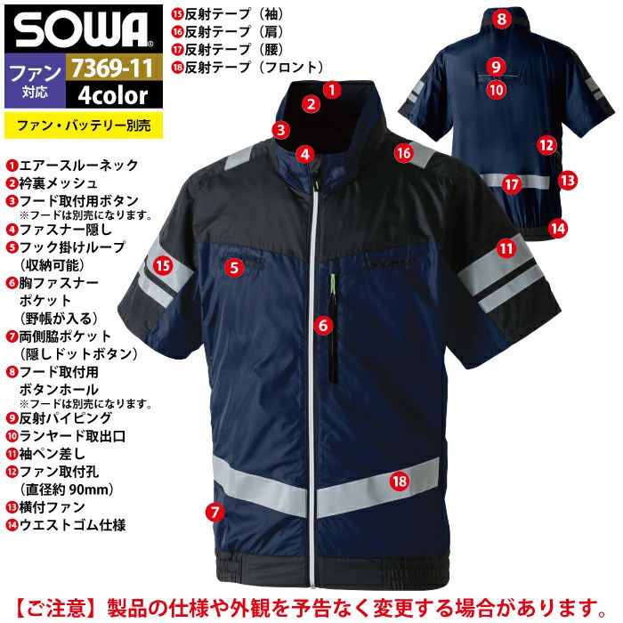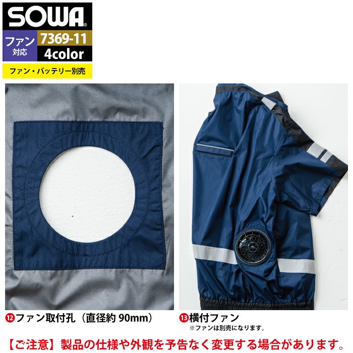 空調服 桑和 SOWA 作業服 作業着 ファン付きウェア(服のみ) 桑和 SOWA 作業服 7369-11 半袖EFブルゾン 6L 作業着 春夏
