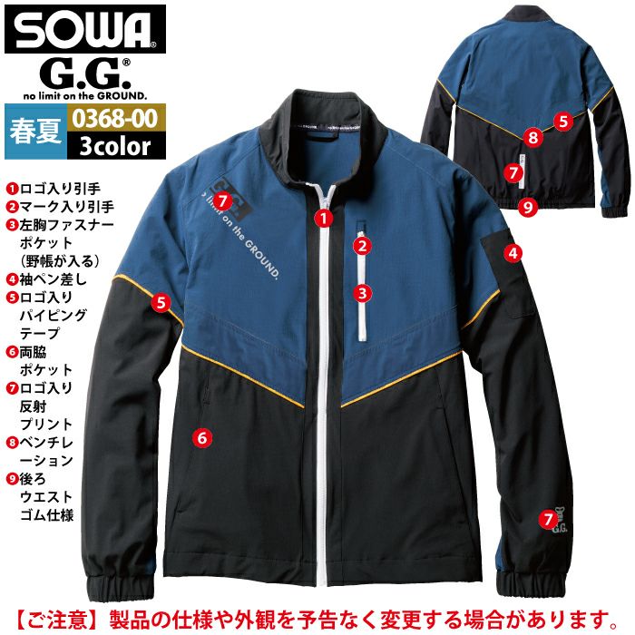 桑和 SOWA 作業服 作業着 作業ズボン 桑和 SOWA 作業服 0368-00 長袖ブルゾン S-LL 作業着 春夏