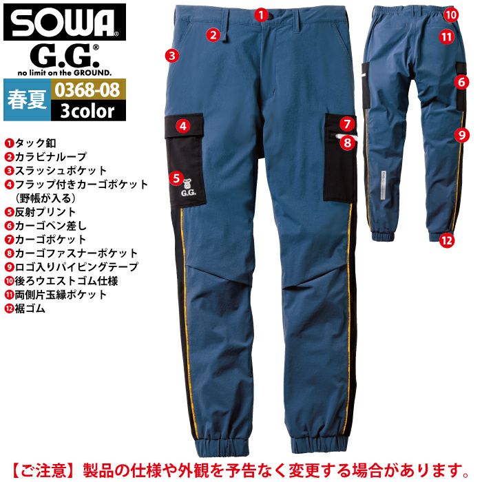 桑和 SOWA 作業服 作業ズボン 0368-08 ジョガーパンツ 3L 作業着 春夏