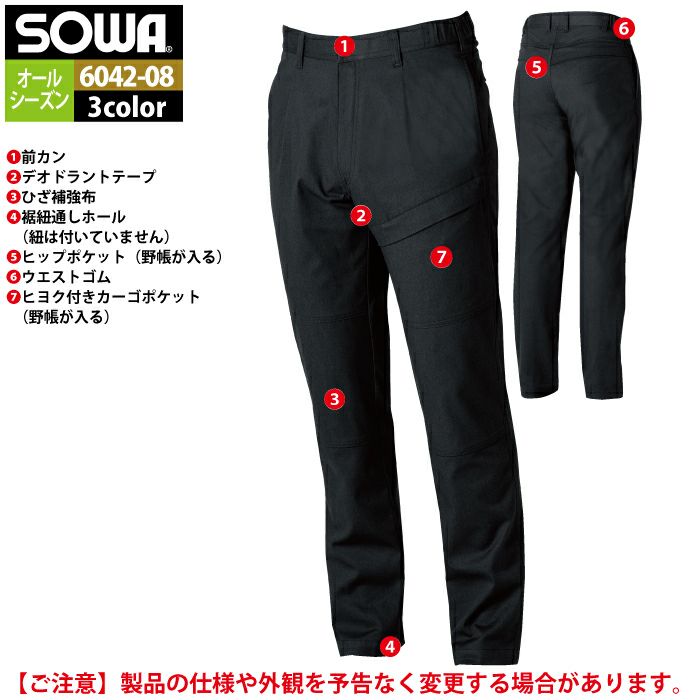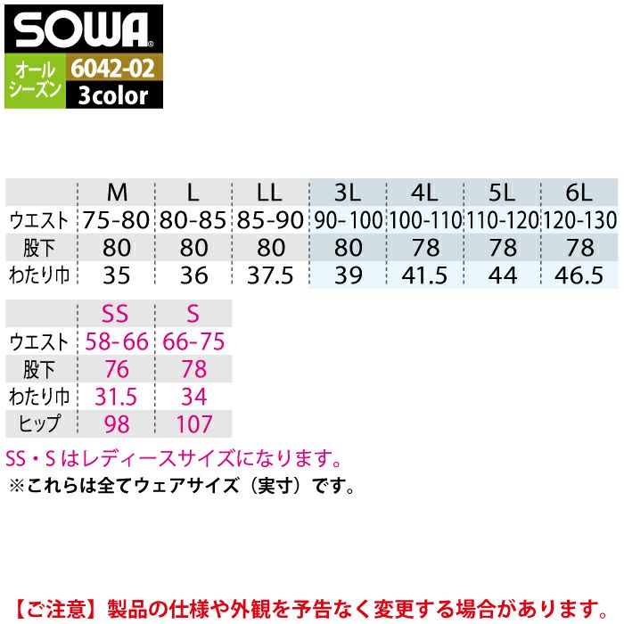 桑和 SOWA 作業服 作業着 作業ズボン 桑和 SOWA 作業服 作業ズボン 6042-08 カーゴパンツ 3L 作業着 春夏