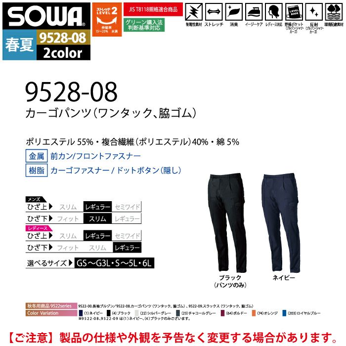 桑和 SOWA 作業服 作業着 作業ズボン 桑和 SOWA 作業服 作業ズボン 9528-08 カーゴパンツ 3L 作業着 春夏