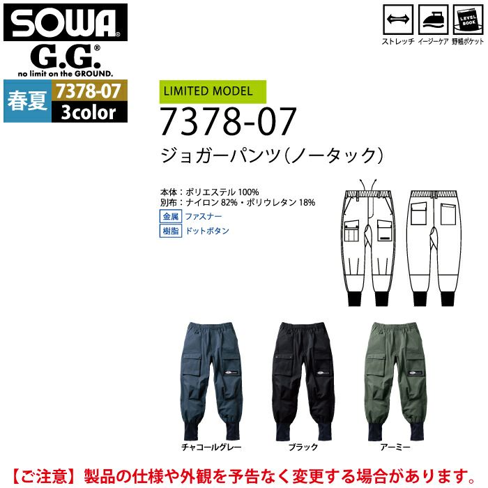 桑和 SOWA 作業服 作業着 作業ズボン 桑和 SOWA 作業服 作業ズボン 7378-07 ジョガーパンツ 4L 作業着 春夏
