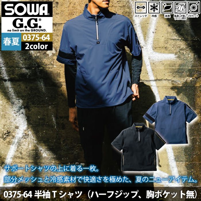桑和 SOWA 作業服 作業着 作業ズボン 桑和 SOWA 作業服 インナー 0375-64 半袖Tシャツ S-3L 作業着 春夏