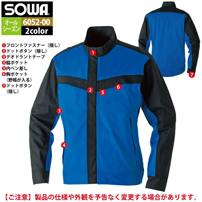 桑和 SOWA 作業服 作業着 作業ズボン 桑和 SOWA 作業服 6052-00 長袖ブルゾン SS-LL 作業着 春夏