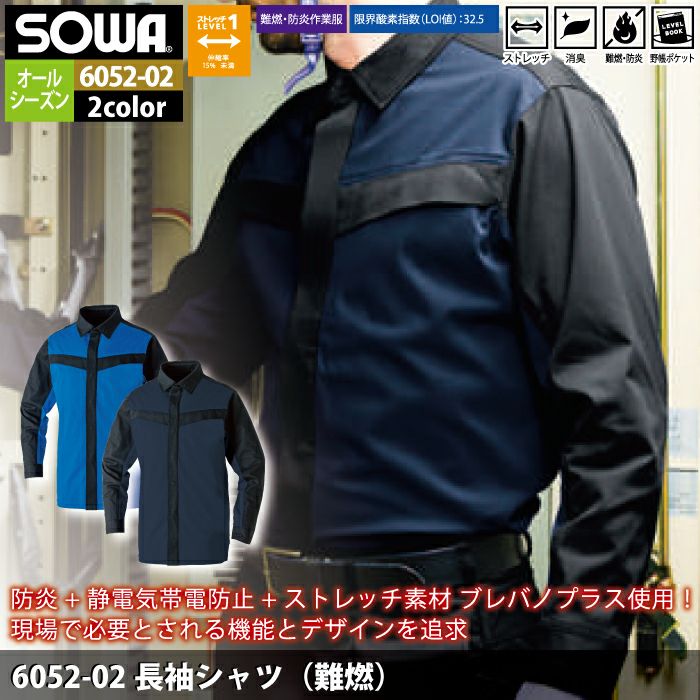 桑和 SOWA 作業服 作業着 作業ズボン 桑和 SOWA 作業服 6052-02 長袖シャツ SS-LL 作業着 春夏