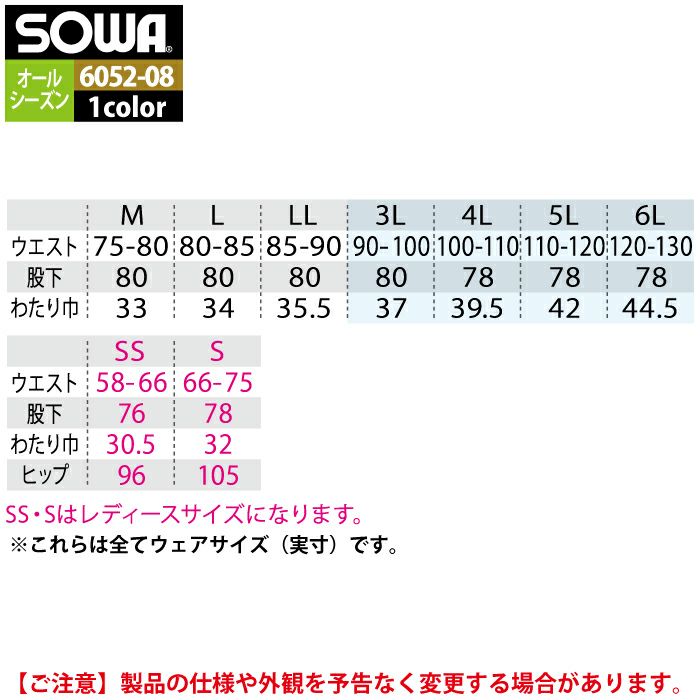 桑和 SOWA 作業服 作業着 作業ズボン 桑和 SOWA 作業服 作業ズボン 6052-08 カーゴパンツ 3L 作業着 春夏