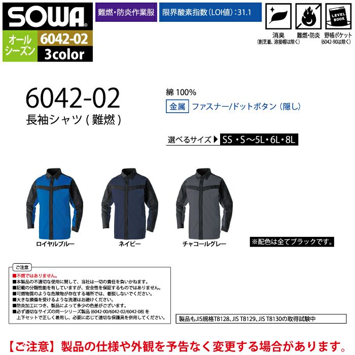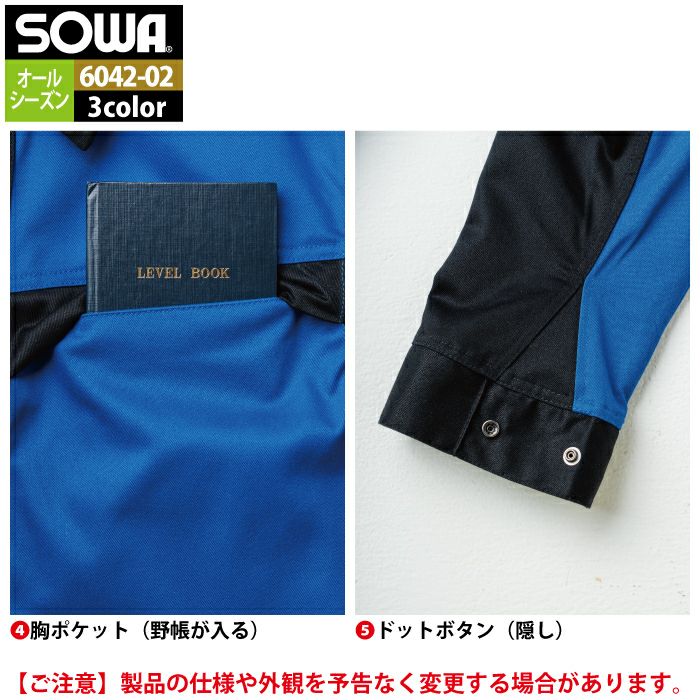 桑和 SOWA 作業服 作業着 作業ズボン 桑和 SOWA 作業服 6042-02 長袖シャツ SS-LL 作業着 春夏