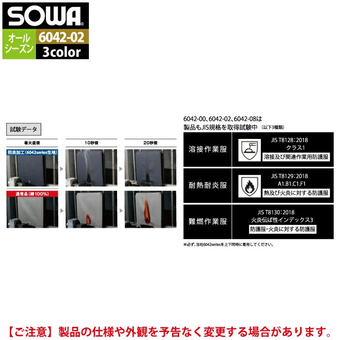桑和 SOWA 作業服 作業着 作業ズボン 桑和 SOWA 作業服 作業用品 6042-90 溶接帽 F 作業着 春夏