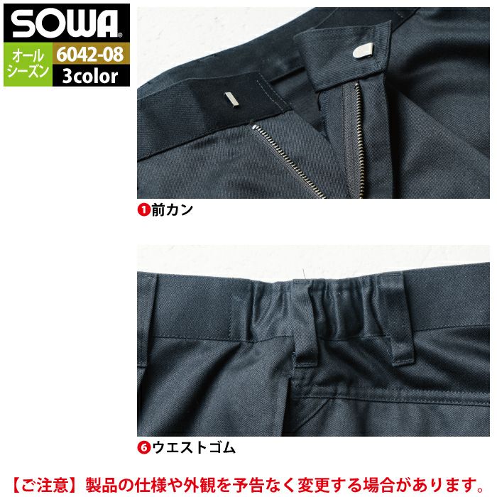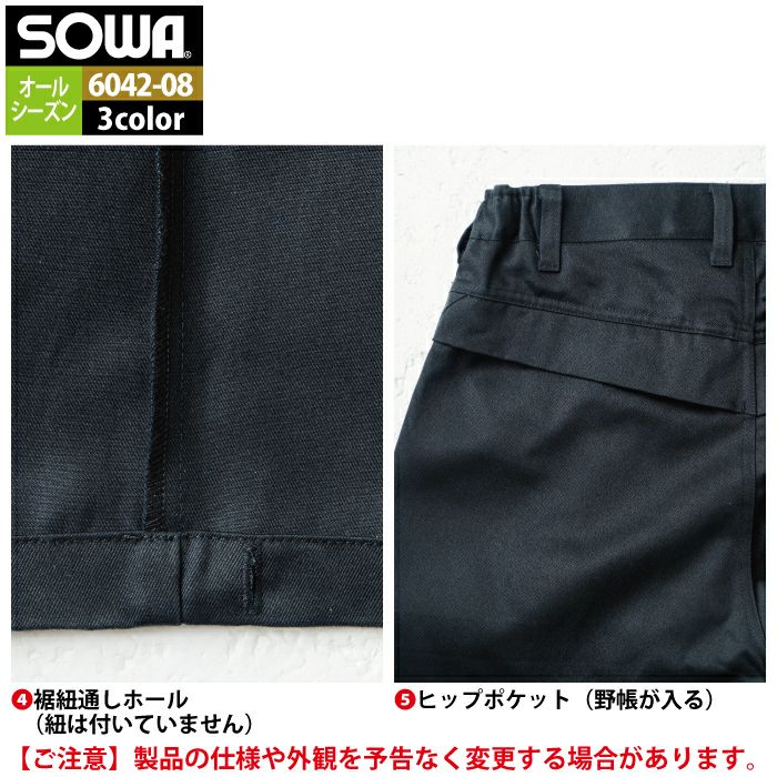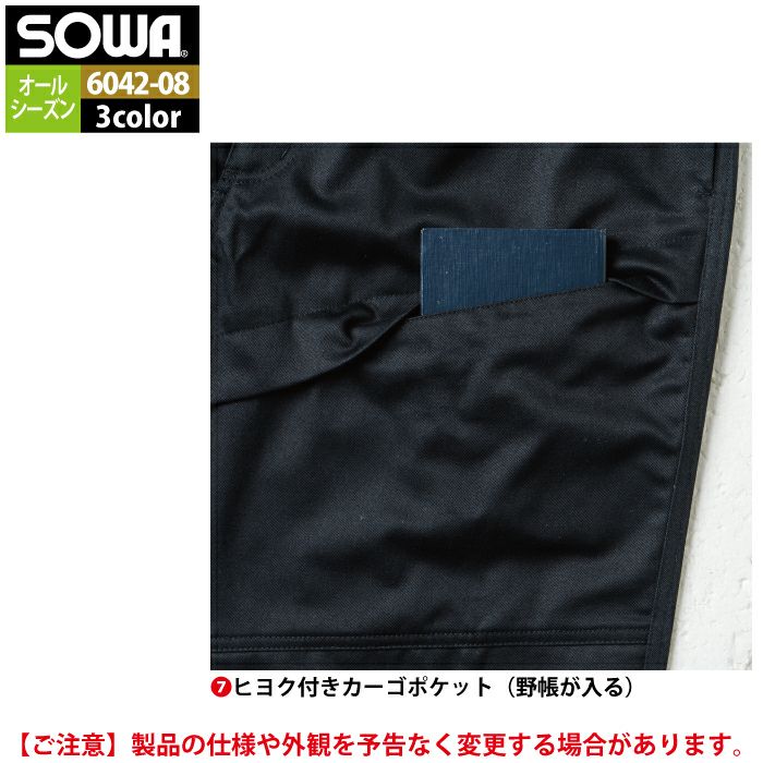 桑和 SOWA 作業服 作業着 作業ズボン 桑和 SOWA 作業服 作業ズボン 6042-08 カーゴパンツ SS-LL 作業着 春夏