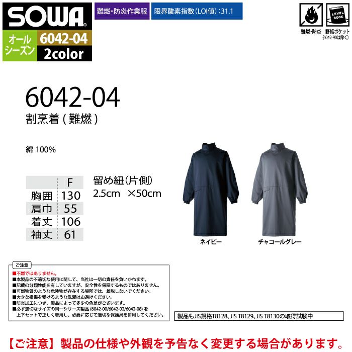 桑和 SOWA 作業服 作業着 作業ズボン 桑和 SOWA 作業服 作業用品 6042-04 割烹着 F 作業着 春夏