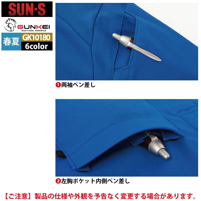 ◇機能:反射パイピング・トリカット仕様・台衿裏黒配色・制電ハニカムメッシュ・両袖ペン差し・左胸ポケット内側ペン差し・後衿下反射パイピング