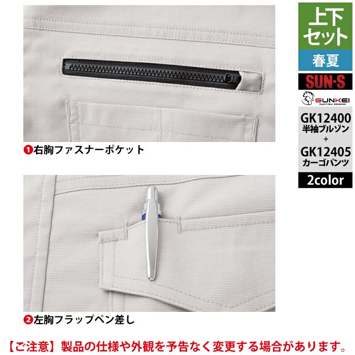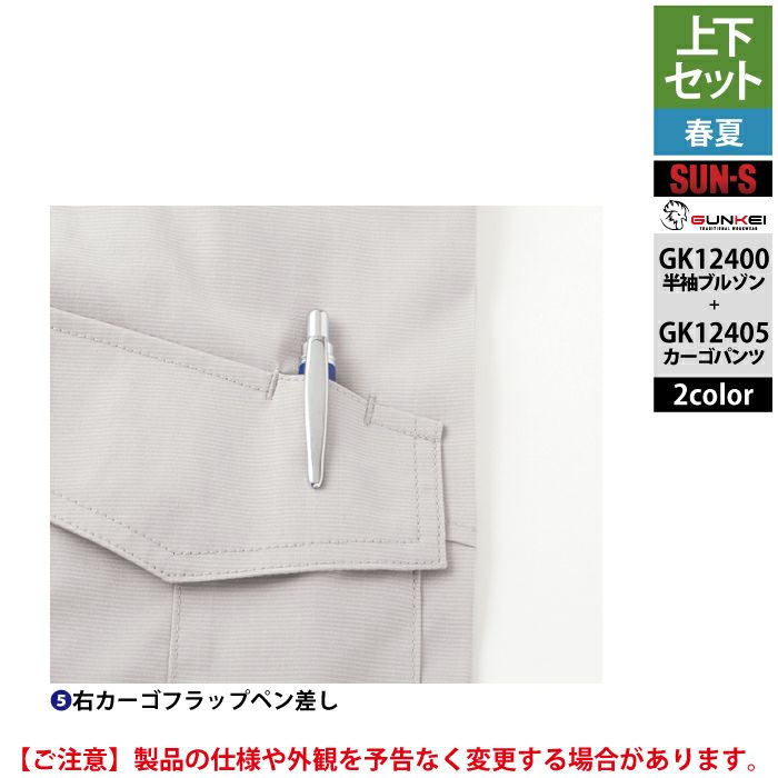 サンエス 作業服 上下セット 春夏 GK12400 半袖ブルゾンSS-3L と GK12405 カーゴパンツ 62-100 作業ズボン 作業着