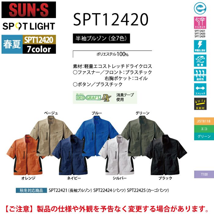 サンエス 作業服 作業着 サンエス 作業服 春夏 SPT12420 半袖シャツ SS-LL 作業着